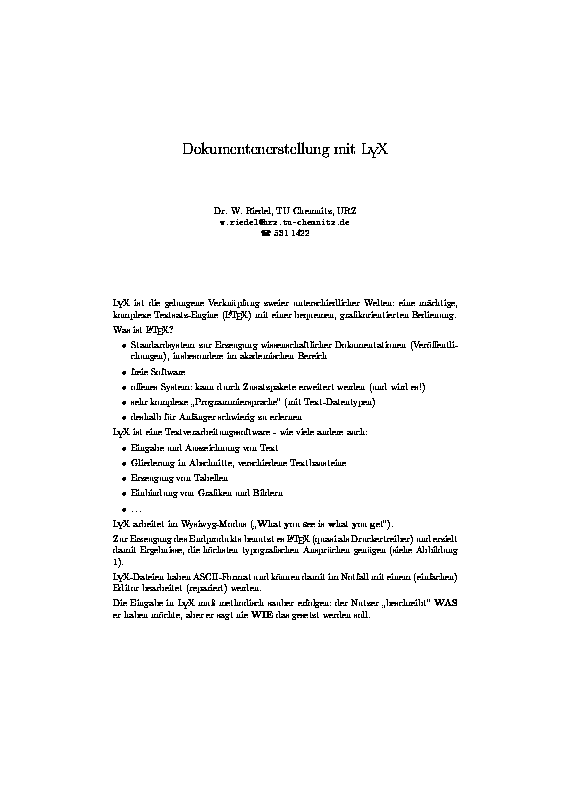 Vortragender: Dr. Wolfgang Riedel Einrichtung: TU Chemnitz Zeit und Ort: 14.30 - 15.20, Strang 4 Einstufung: Geeignet für Einsteiger Material zum Vortrag: http://archiv.tu-chemnitz.de/pub/1999/0010/index.html Zusammenfassung: